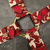 Festive fabrics from Fabric Love, finished with gold stitching and gold hard wear from Green Grizzly.