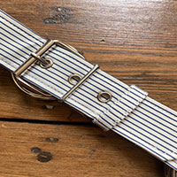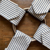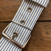 White & Blue: Fabric from The Textile Centre with white stitching and silver hard wear.